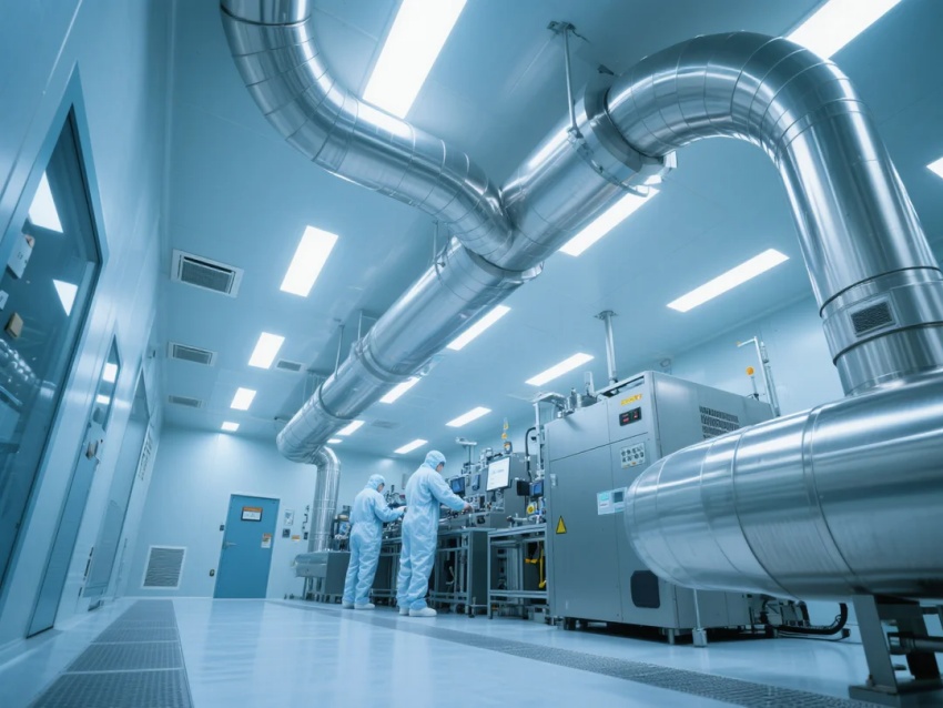圍護系統:采用50mm厚金屬夾芯彩鋼板墻體,表面覆有抗靜電涂層,接縫處采用圓弧過渡設計,避免積塵。天花板采用FFU(風機過濾單元)滿布布局,配合高效HEPA過濾器,確保垂直層流氣流組織,潔凈度穩定控制在≤1,000顆粒/立方米(≥0.5μm)。