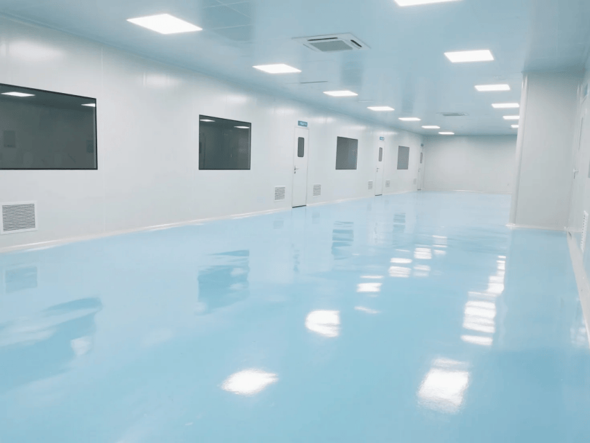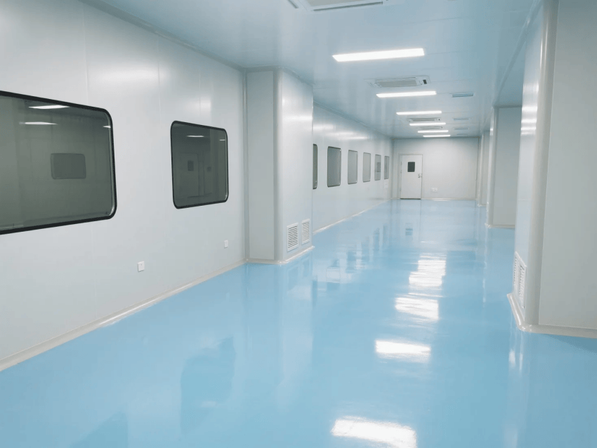 本方案依據(jù)ISO14644-1Class7(萬級)潔凈標準設(shè)計,采用淺藍色彩鋼板與啞光白環(huán)氧樹脂墻面構(gòu)成主視覺系統(tǒng),營造科技感與潔凈度并重的生產(chǎn)環(huán)境。圍護結(jié)構(gòu)選用50mm厚雙面不銹鋼復(fù)合板,所有陰陽角均采用R50mm圓弧過渡處理,確保無衛(wèi)生死角。