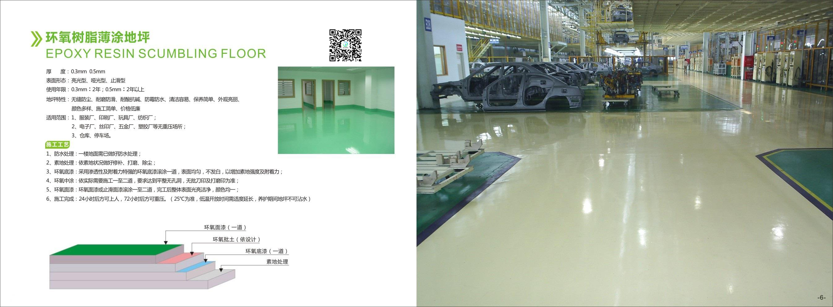 環(huán)氧樹脂薄涂地板漆針對(duì)一般輕工業(yè)作業(yè)場所用,適用于一般水泥砂漿地面及洗石地面,具有防塵美觀耐磨等特性。可根據(jù)客戶要求及實(shí)際生產(chǎn)需要對(duì)地坪厚度進(jìn)行施工。 性能特點(diǎn): 附著力強(qiáng),無縫防塵,耐磨,平坦性及遮蓋力佳; 耐微酸,微堿,防毒性佳,安全無毒。 適用場所: 原舊環(huán)氧地坪修補(bǔ); 醫(yī)院,藥廠,電子,食品廠; 實(shí)驗(yàn)室,地下停車場或輕放場所等行業(yè)。
