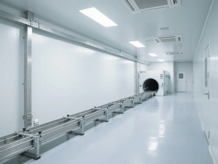 在陰陽(yáng)角處理上,應(yīng)采用R≥50mm的圓弧角設(shè)計(jì),既便于清潔又能避免積塵。所有穿墻管道必須采用不銹鋼套管密封,套管與墻體之間用防火密封膠填實(shí)。門(mén)框安裝要確保與墻體的密封性,建議采用鋁合金潔凈門(mén)配自動(dòng)門(mén)底密封條。