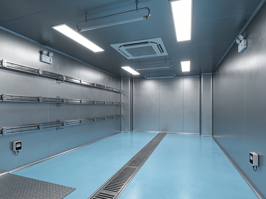 核心施工強化保溫隔熱基礎。圍護結(jié)構(gòu)選用0.8mm厚彩鋼板,芯材導熱系數(shù)≤0.03W/(m·K),拼接處打滿專用密封膠,膠縫寬度3-5mm無氣泡;墻面與地面、吊頂交接處做圓弧處理,兼顧潔凈與保溫。地面采用保溫環(huán)氧自流平,基層鋪設保溫層,減少地面熱傳導;門窗選用斷橋鋁+雙層中空Low-E玻璃,配備雙層密封膠條,杜絕冷熱交換導致的溫濕波動。