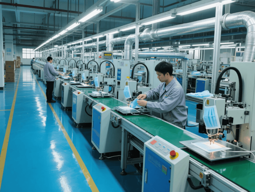 本方案采用"醫療工業極簡風",符合YY/T0969-2013口罩行業標準。車間按功能分區: