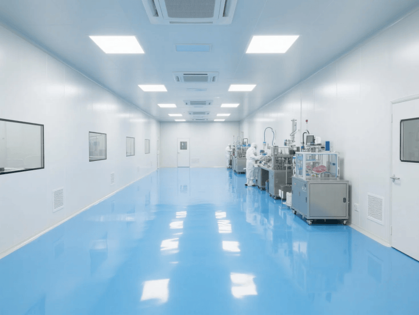 淺灰導(dǎo)靜電環(huán)氧地坪系統(tǒng)通過ISO13485認(rèn)證,添加特殊導(dǎo)電填料,靜電消散時(shí)間<1秒;